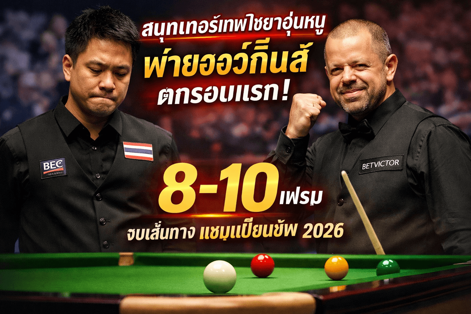 สนุกเกอร์เทพไชยาอุ่นหนู แพ้ ฮอว์กิ้นส์ ยุติเส้นทางรอบแรก ทัวร์ แชมเปี้ยนชิพ 2026